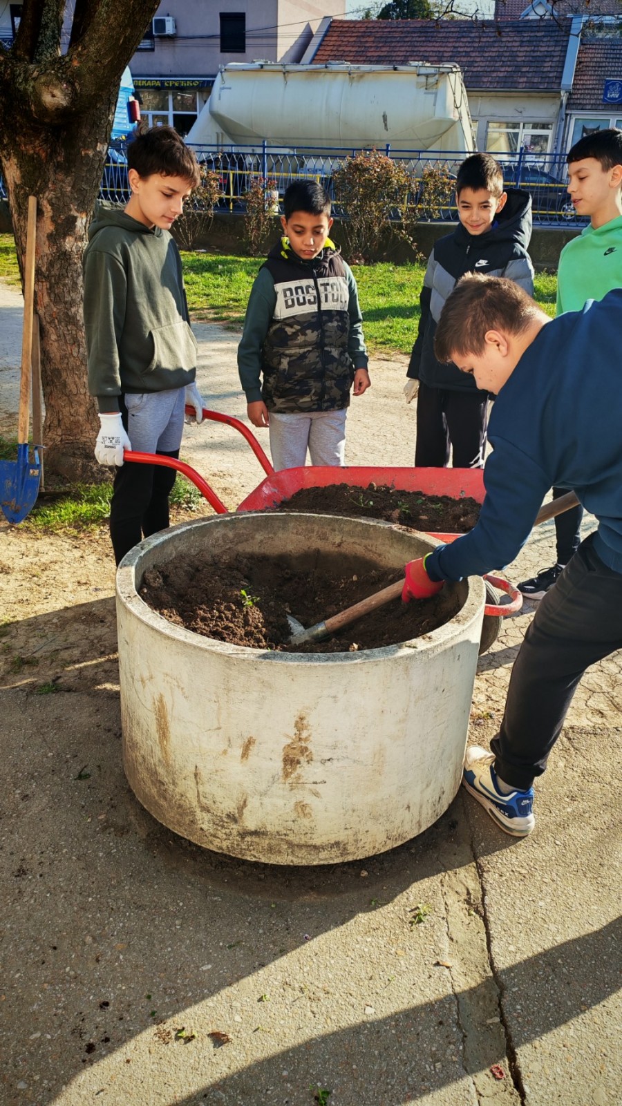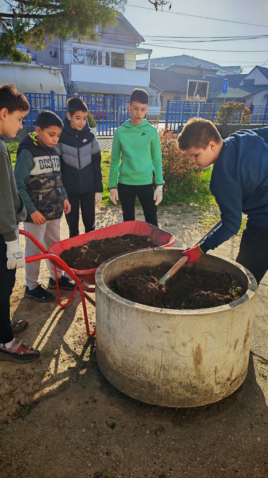 У првим радним акцијама учествују ученици, чланови Ученичког парламента и наставници, који су заједничким снагама започели припрему и уређење простора. У наредном периоду планирани су даљи радови који обухватају сређивање површина, фарбање, као и садњу биљака које ће додатно оплеменити овај простор.